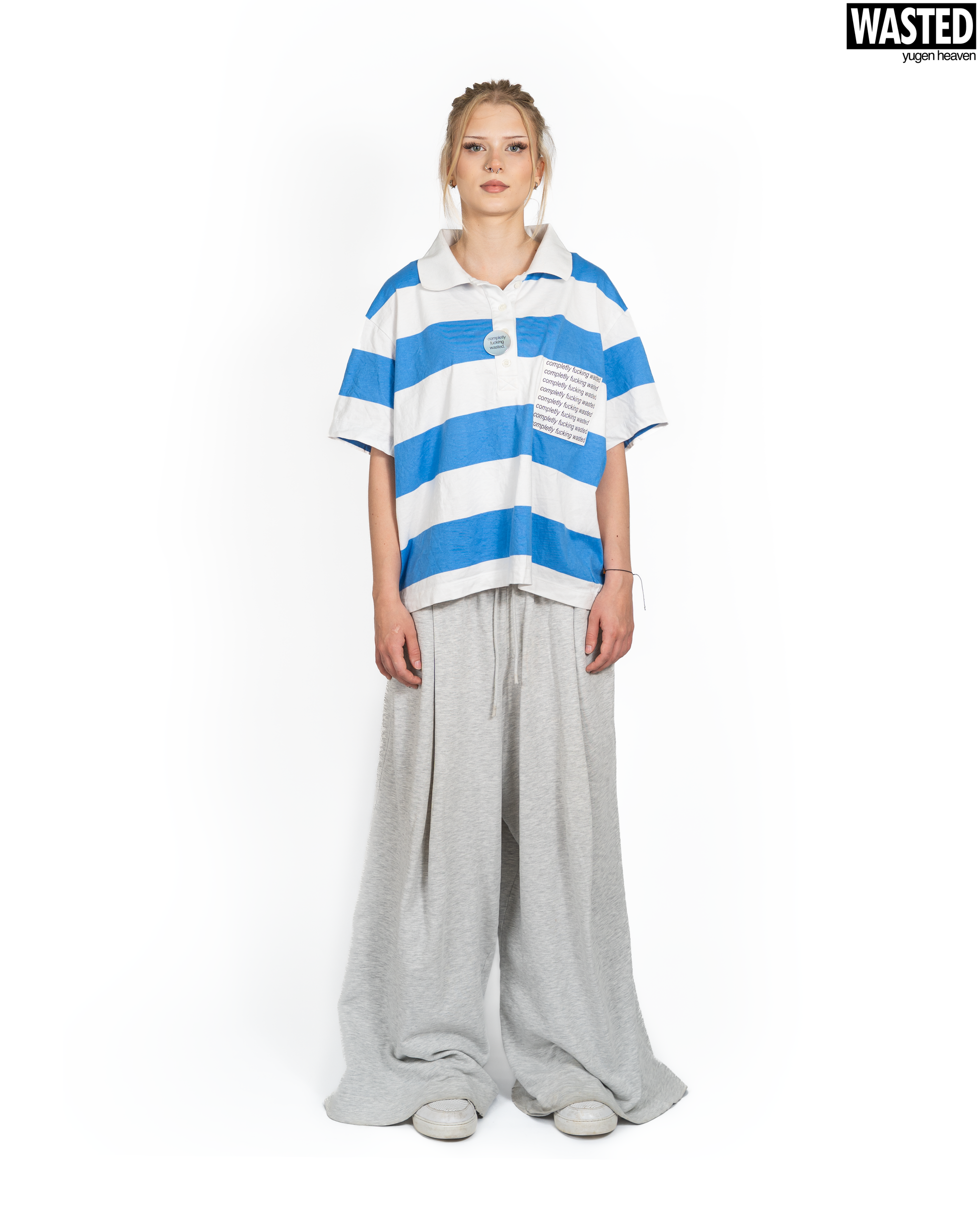 This oversize polo with special oversize fit features "completely fucking wasted" pocket and "completely fucking wasted" pin